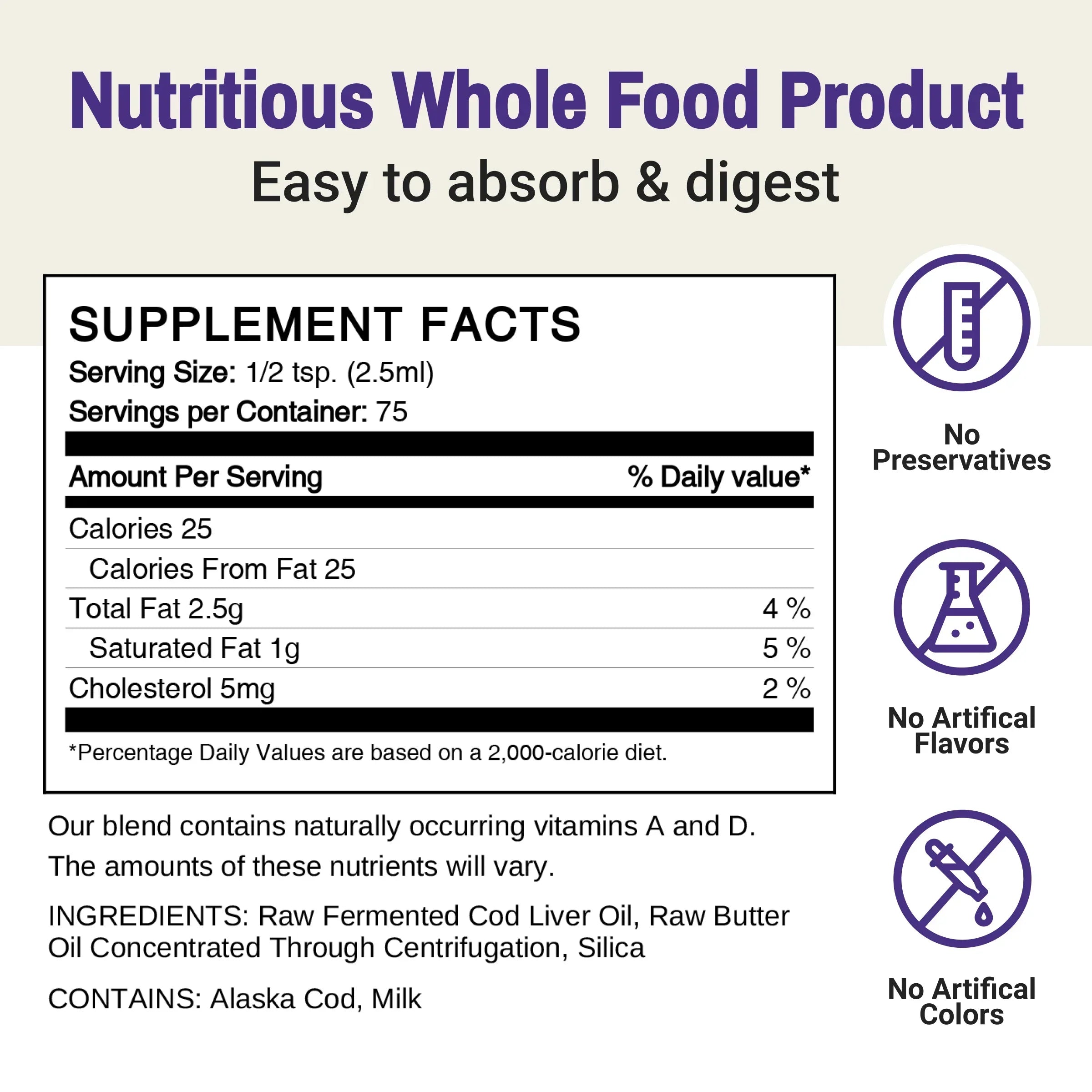 - Einzigartige Mischung aus hochwertigem, natürlichem, nicht erhitztem und traditionell hergestelltem Lebertran und Butteröl